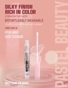 - Versatile Wear: Perfect on its own or layered over lipstick for an irresistible shine. Elevate your everyday glam with PASTEL BEAUTY Butter Gloss!